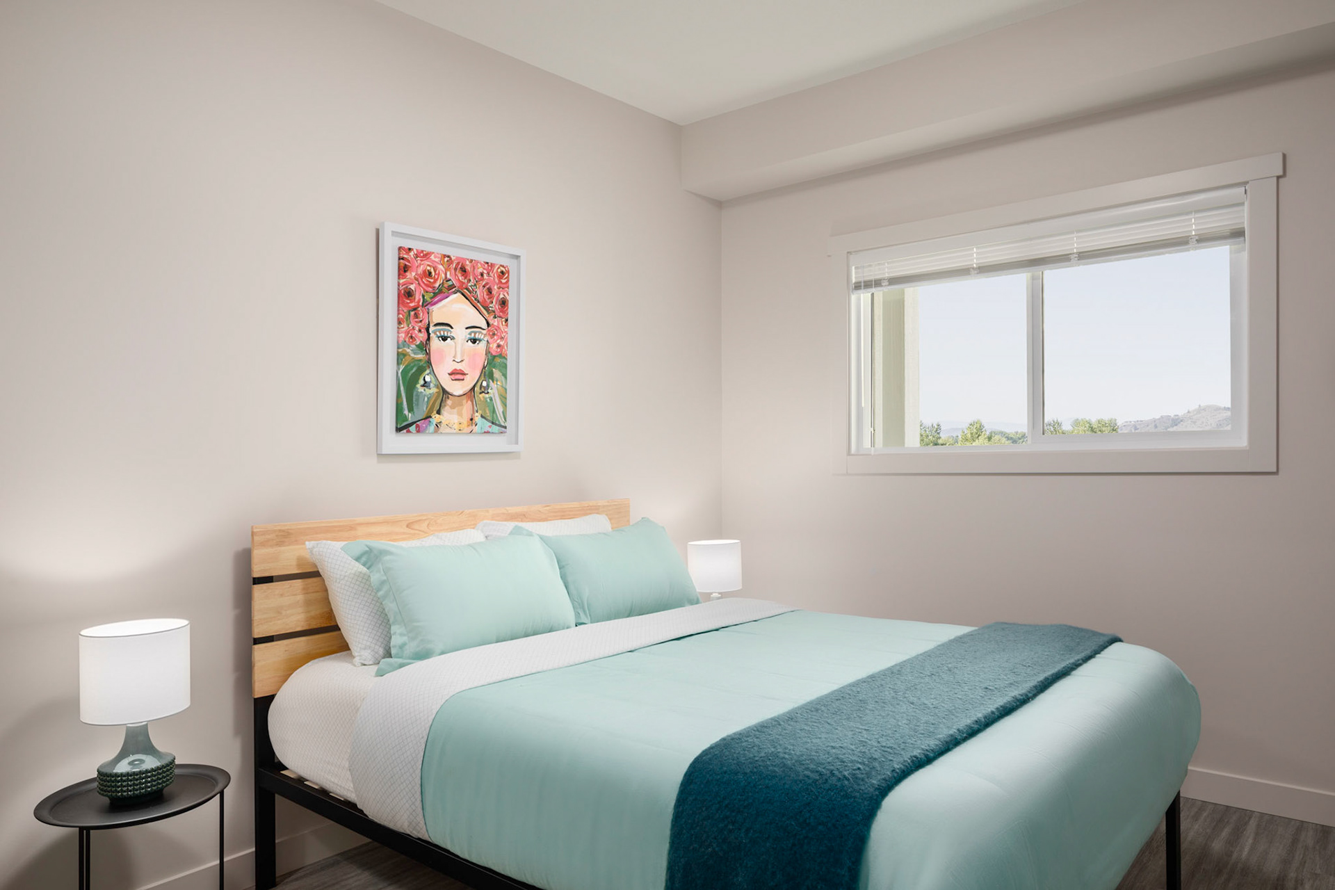 Creekview Heights (pictured below) consists of modern luxury one and two-bedroom suites. The three-building complex is located in a residential neighbourhood northeast of downtown Vernon